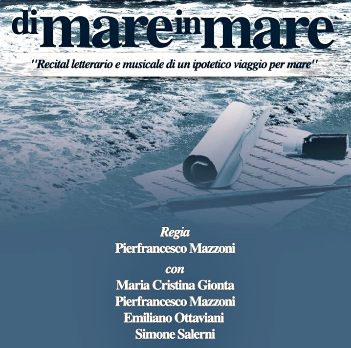 DI MARE IN MARE è il recital letterario e musicale di un ipotetico viaggio per mare, o meglio attraverso la vita. Gli eventi del mare, infatti, sono gli stessi della vita; alla vita e al mare si adattano le stesse parole: bonacce, tempeste, schiarite. Quante volte abbiamo sentito dire “una vita alla deriva”! Le fasi del mare e gli stati d’animo di una vita sono sovrapponibili, assimilabili, quasi identici. Un amore travagliato equivale a una tempesta; una vita senza sussulti ed emozioni può essere come il mare quando c’è calma piatta; una passione travolgente è come un uragano; i traguardi raggiunti sono come onde che si infrangono sulla riva.